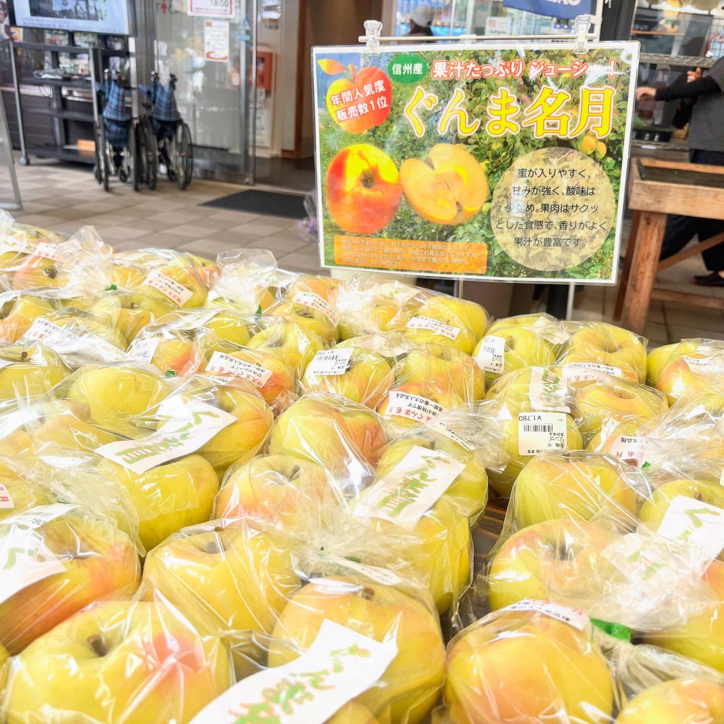 直売所からのお知らせです📢 毎年大人気のりんご「ぐんま名月」入荷しました🍎✨ 「ぐんま名月」はその名の通り、群馬で誕生した品種で、中秋の名月🌕のように黄色いりんごです。 甘みが強く、果汁がたっぷりジューシー!黄色いりんごとしては珍しく蜜が入りやす品種です。 香りもとても良いりんごなので、ぜひ一度食べてみて下さい🎵 ※現在入荷しているものは長野県産になります。 地元産のぐんま名月は11月中旬頃入荷予定です。 #道の駅 #八ッ場ふるさと館 #直売所 #りんご #ぐんま名月 #長野原町 #top